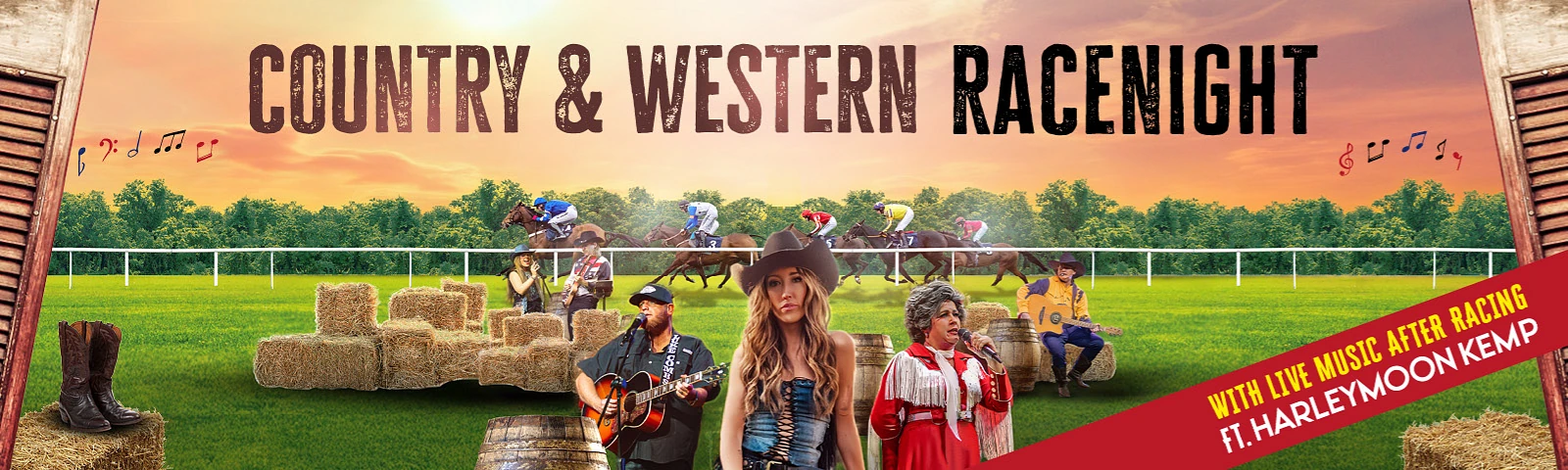 Stick around for an explosive Country & Western afterparty featuring live performances, including Harleymoon Kemp, plus tribute acts celebrating country legends like Dolly Parton, Kenny Rogers, and more.